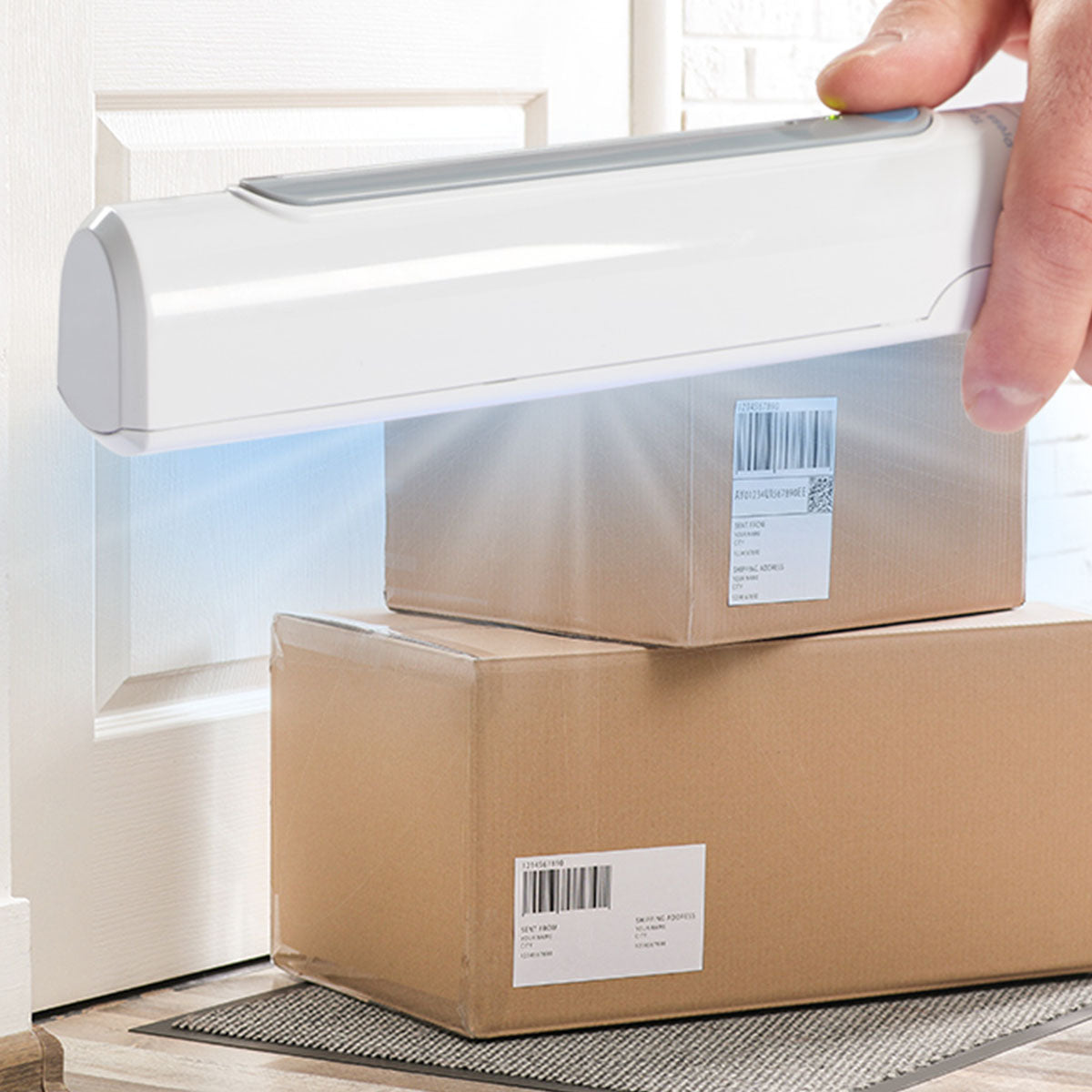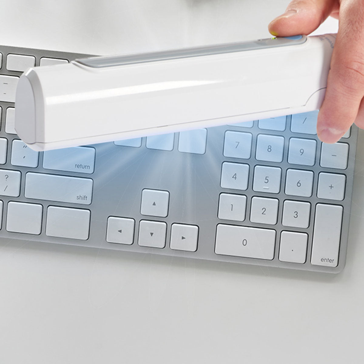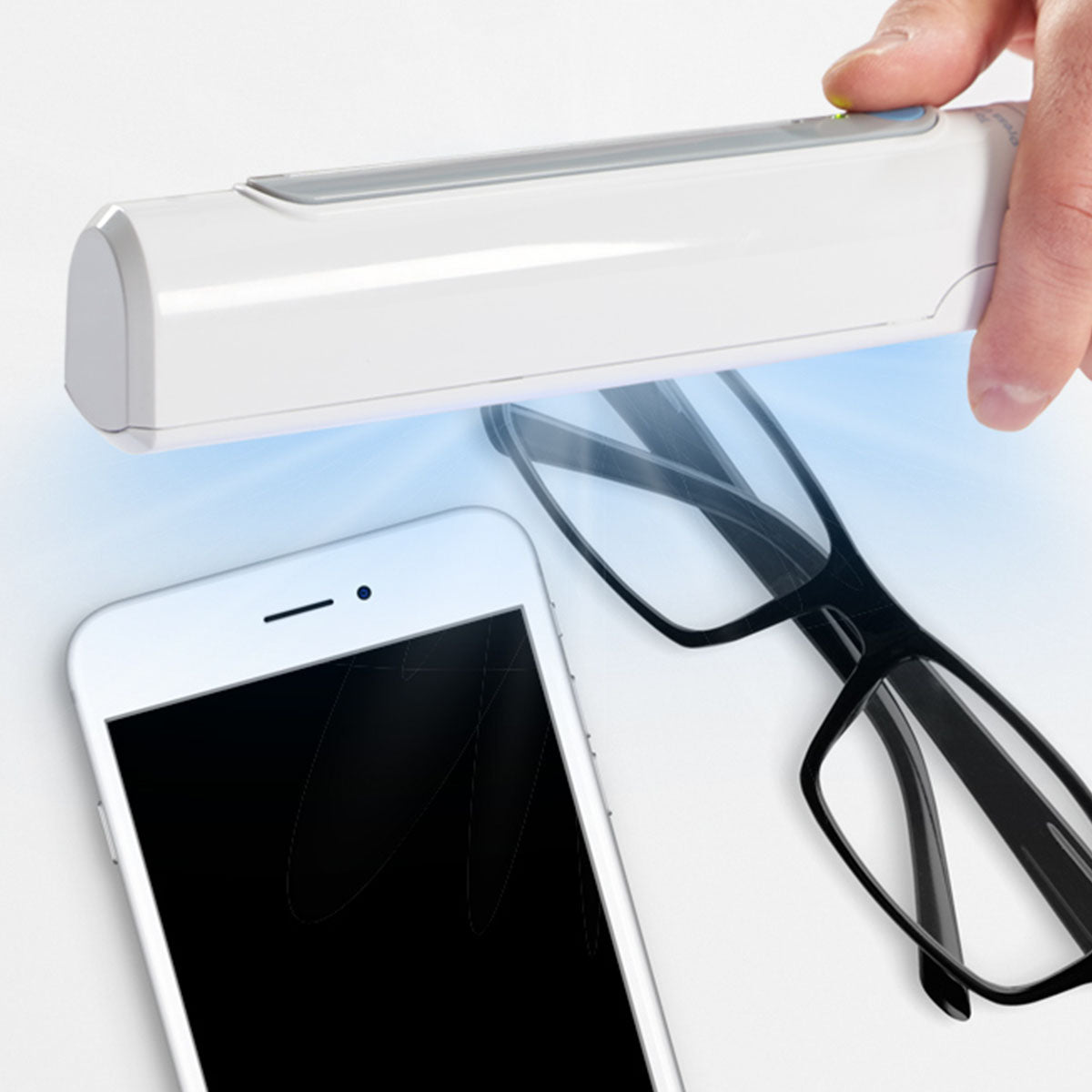 The Travel UV Sanitizing Wand by Sharper Image uses powerful Ultraviolet-C light to significantly reduce germs, bacteria, mold and dust mites. Designed for use on soft and hard surfaces, it works on bedding, towels, chairs, doorknobs, light switches, bathroom fixtures, phones, remote controls and more. Features auto safety shutoff if accidentally overturned.